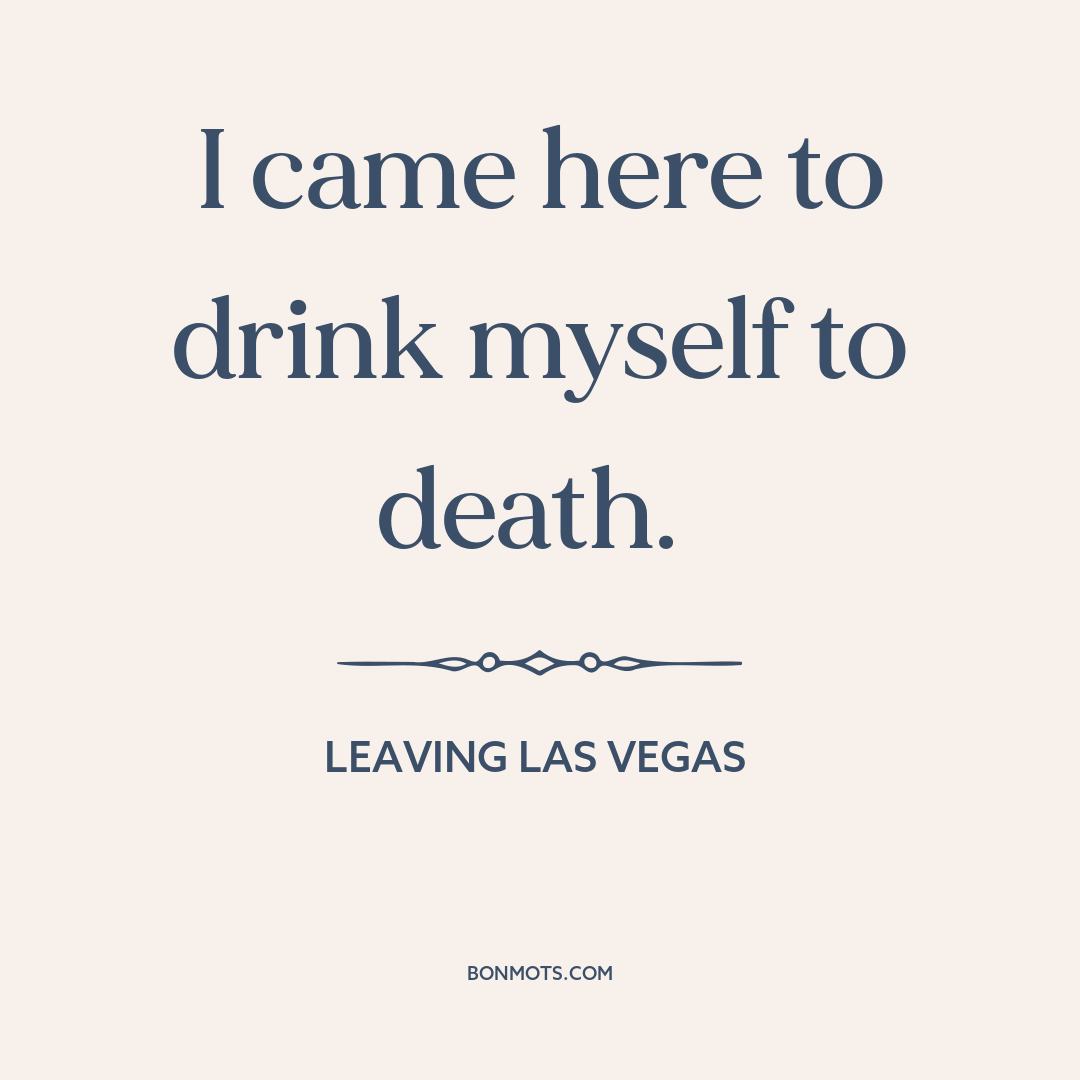 I came here to drink myself to death.