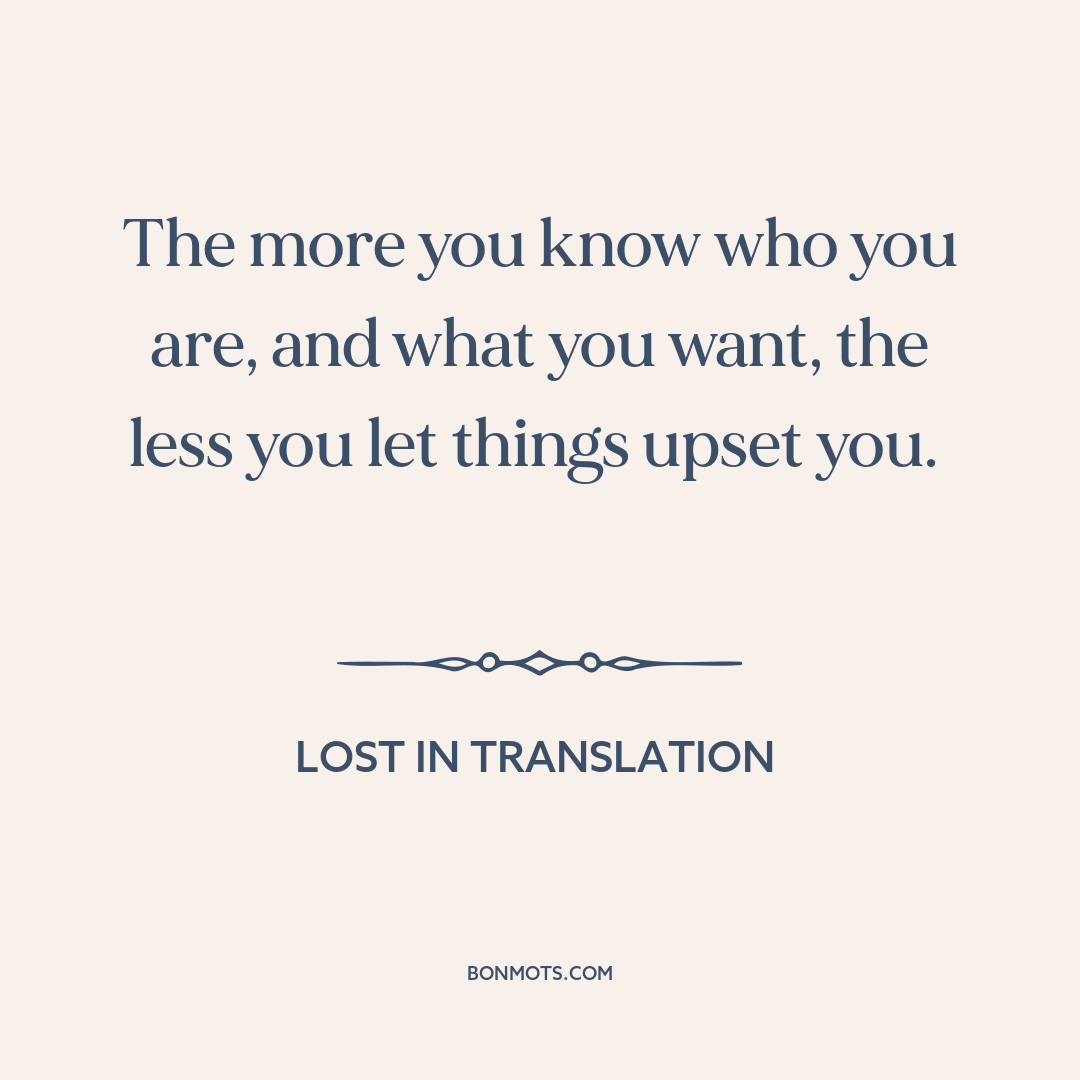 The more you know who you are, and what you want, the less you let things upset you.