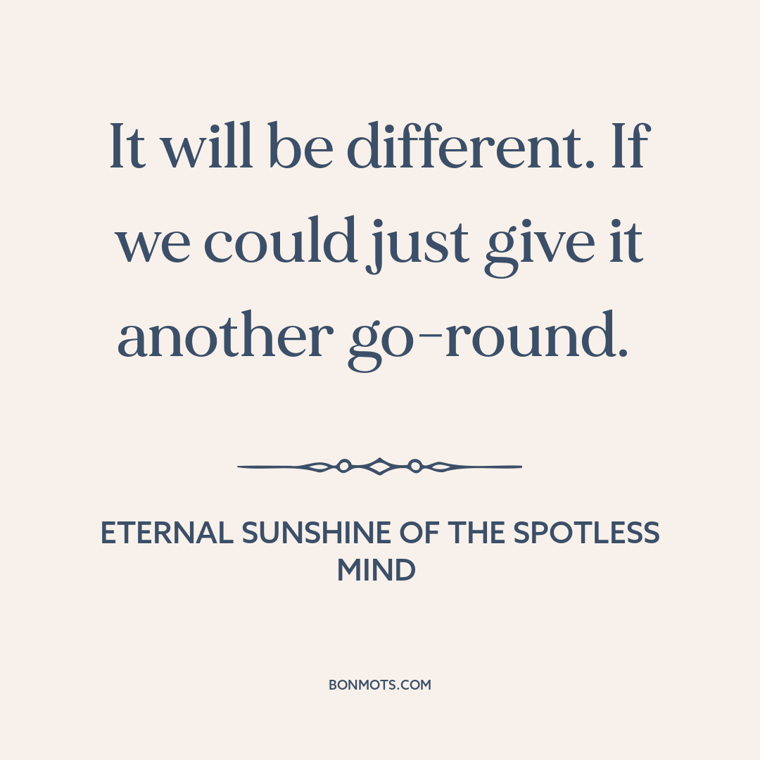 It will be different. If we could just give it another go-round.