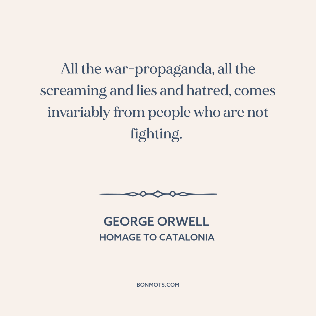 All the war-propaganda, all the screaming and lies and hatred, comes invariably from people who are not fighting.
