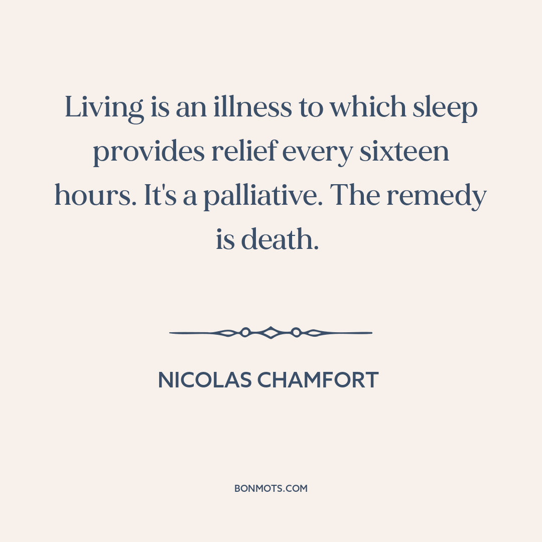 Living is an illness to which sleep provides relief every sixteen hours. It's a palliative. The remedy is death.