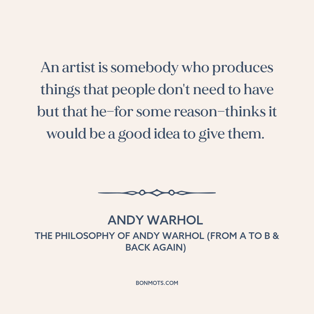 An artist is somebody who produces things that people don't need to have but that he—for some reason—thinks it would be a good idea to give them.