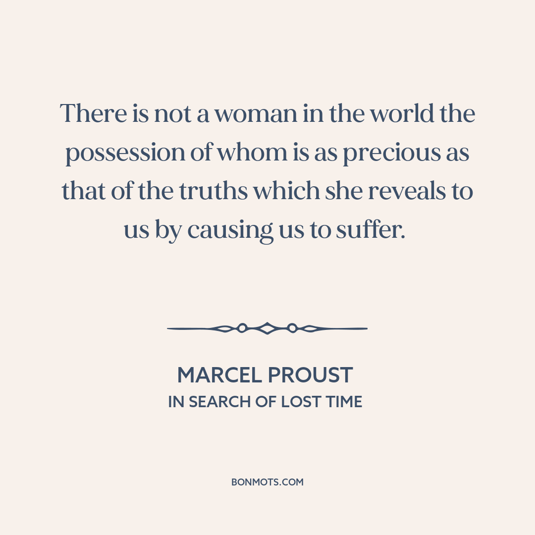 There is not a woman in the world the possession of whom is as precious as that of the truths which she reveals to us by causing us to suffer.