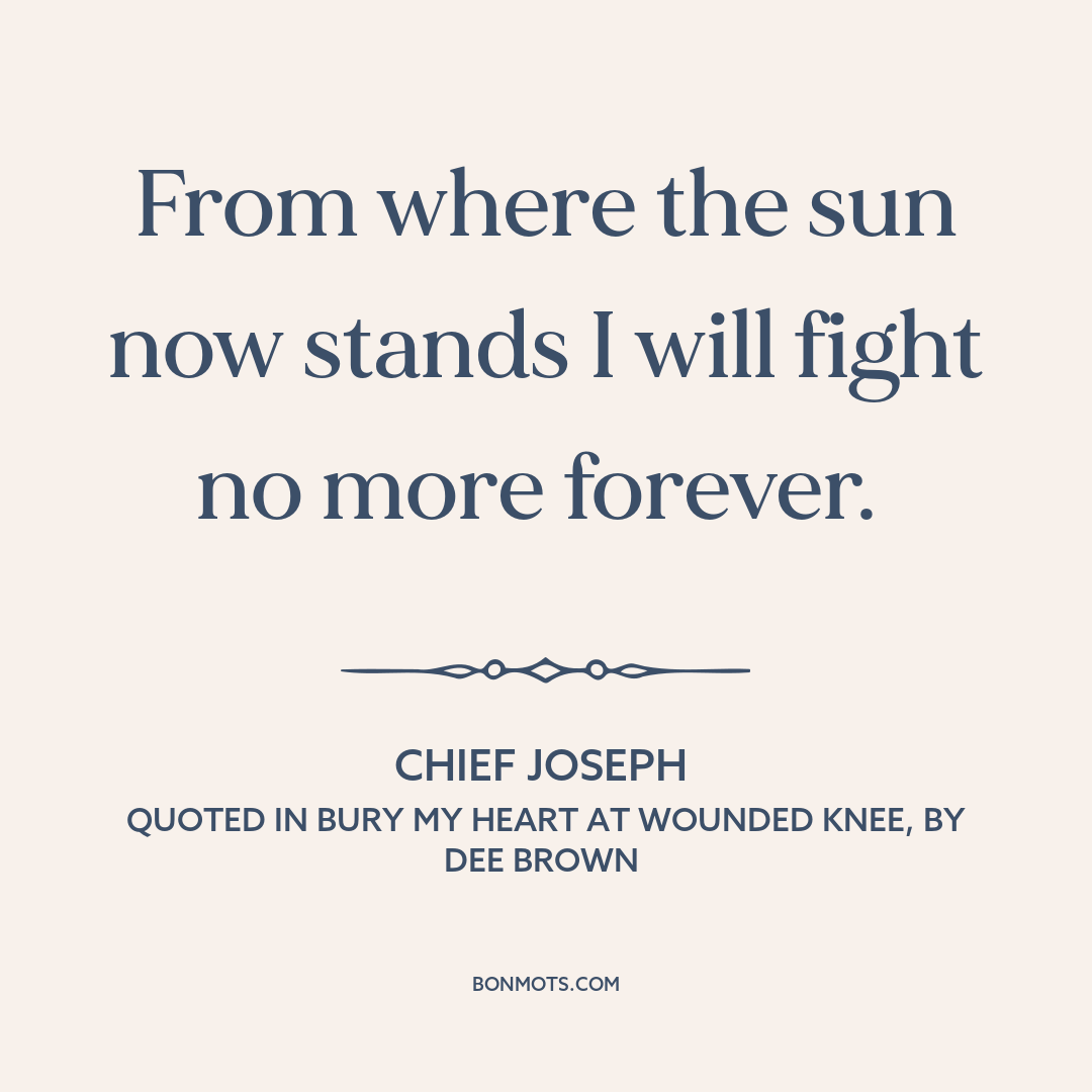 Quoted in Bury My Heart at Wounded Knee, by Dee Brown