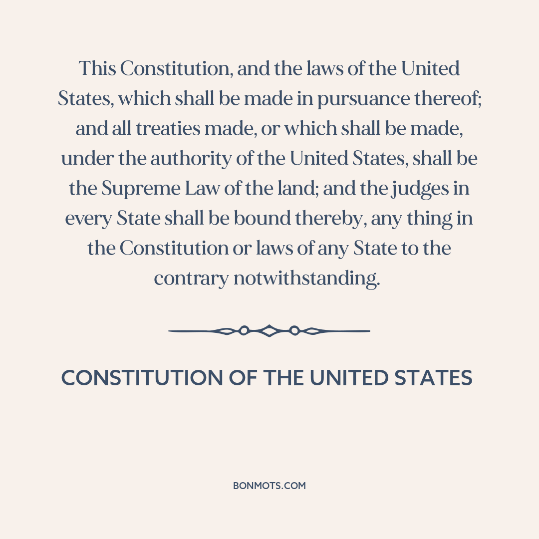 This Constitution, and the laws of the United States, which shall be made in pursuance thereof; and all treaties made, or which shall be made, under the authority of the United States, shall be the Supreme Law of the land; and the judges in every State shall be bound thereby, any thing in the Constitution or laws of any State to the contrary notwithstanding.