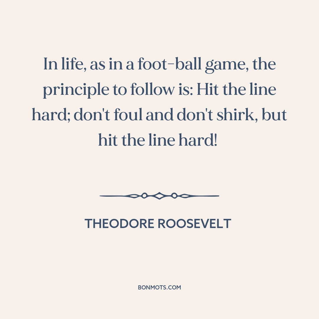 In life, as in a foot-ball game, the principle to follow is: Hit the line hard; don't foul and don't shirk, but hit the line hard!