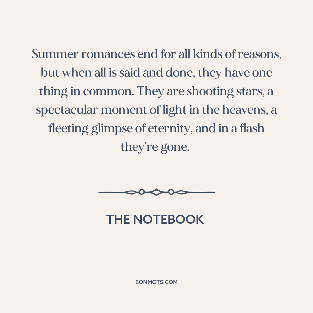 Summer romances end for all kinds of reasons, but when all is said and done, they have one thing in common. They are shooting stars, a spectacular moment of light in the heavens, a fleeting glimpse of eternity, and in a flash they're gone.