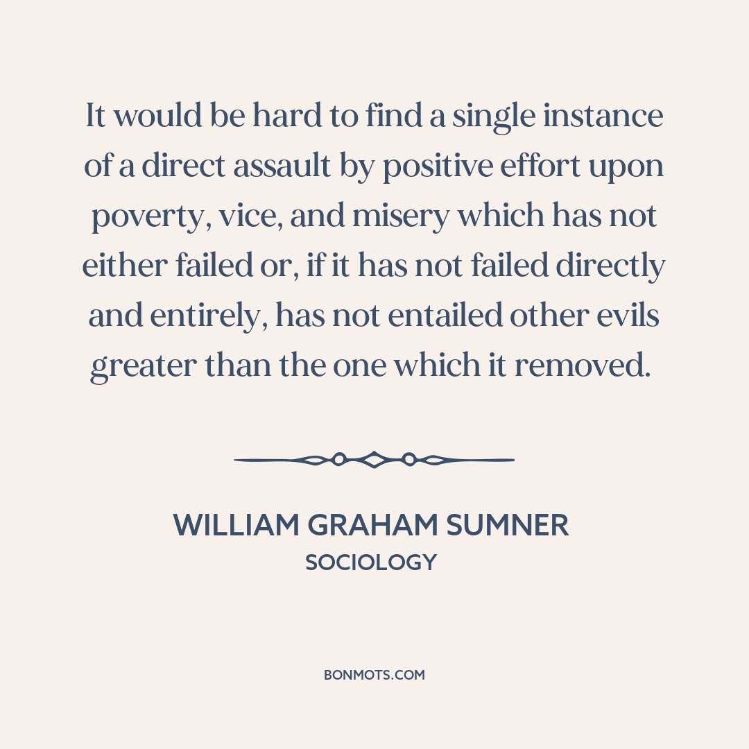 It would be hard to find a single instance of a direct assault by positive effort upon poverty, vice, and misery which has not either failed or, if it has not failed directly and entirely, has not entailed other evils greater than the one which it removed.