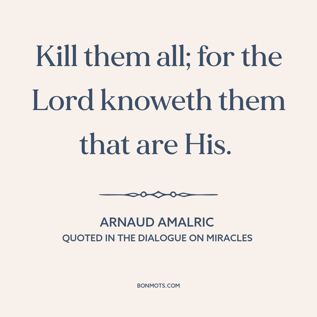 Arnaud Amalric. Quoted in The Dialogue on Miracles, written by Caesarius of Hesterbach, translated by Ronald Pepin. Vol. 1, Liturgical Press, 2023.