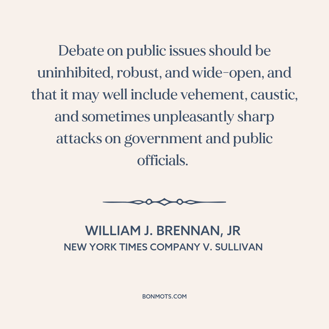 Debate on public issues should be uninhibited, robust, and wide-open, and that it may well include vehement, caustic, and sometimes unpleasantly sharp attacks on government and public officials.