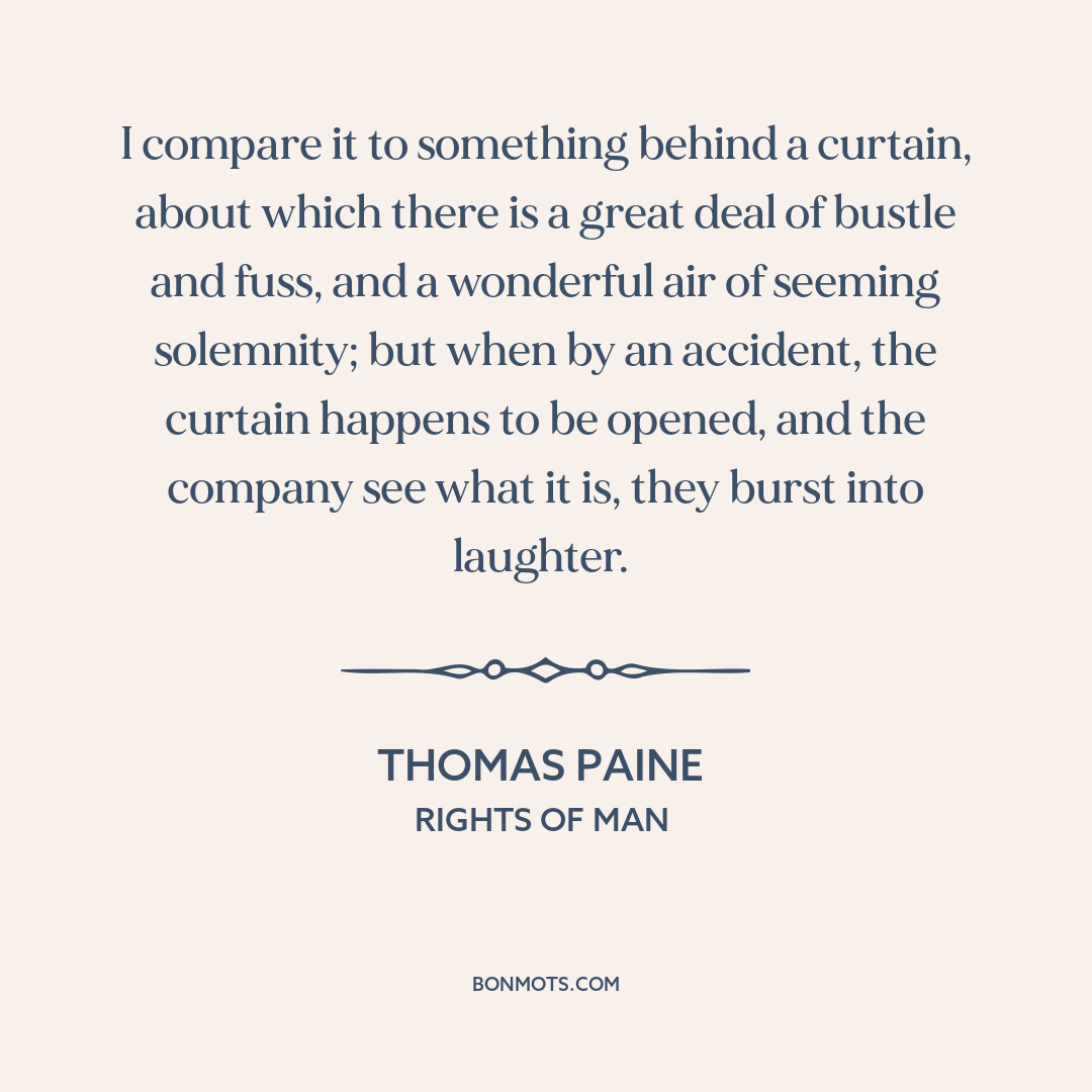 I compare it to something behind a curtain, about which there is a great deal of bustle and fuss, and a wonderful air of seeming solemnity; but when by an accident, the curtain happens to be opened, and the company see what it is, they burst into laughter.