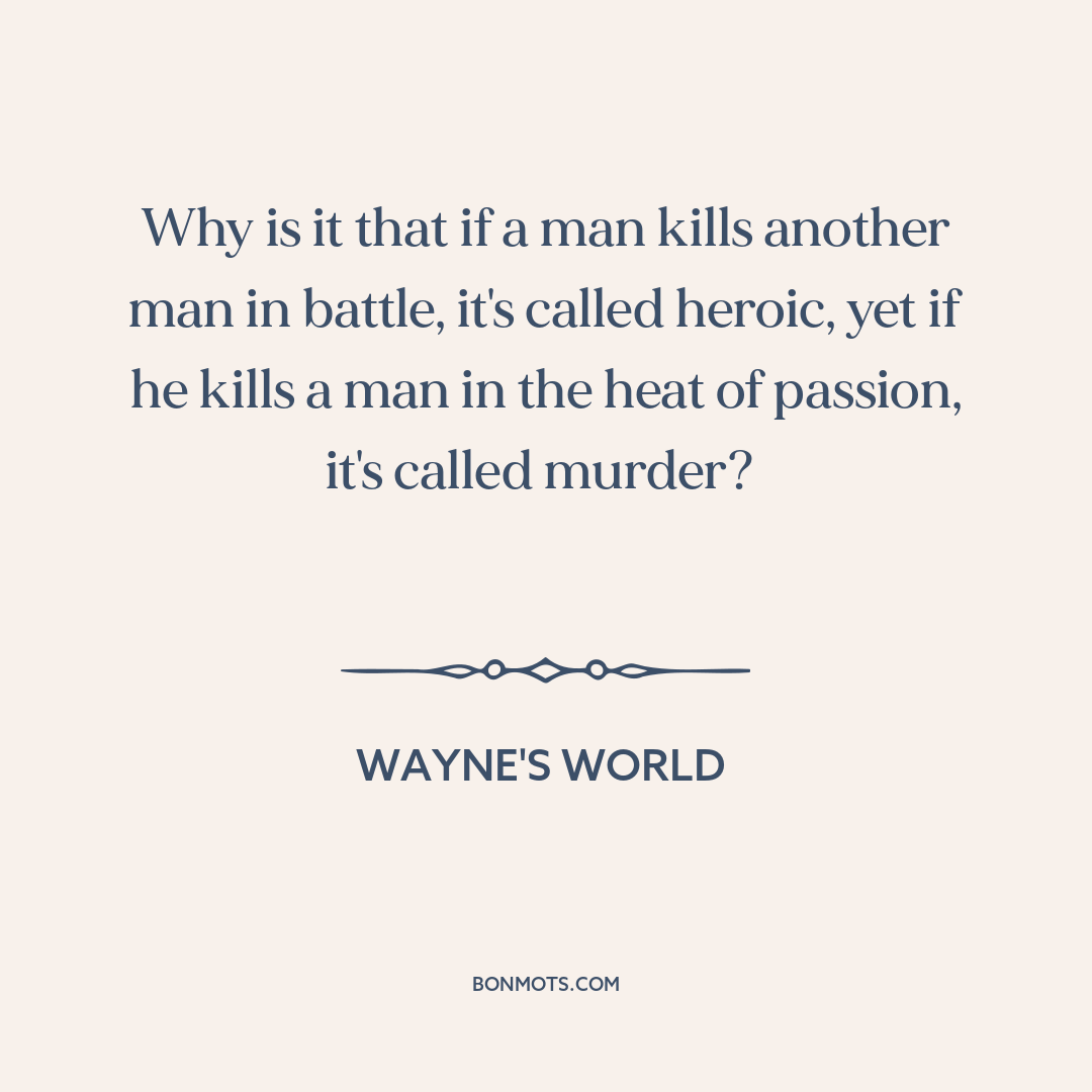 Why is it that if a man kills another man in battle, it's called heroic, yet if he kills a man in the heat of passion, it's called murder?