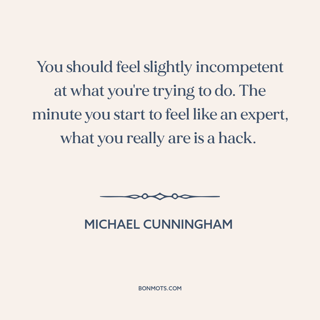 You should feel slightly incompetent at what you're trying to do. The minute you start to feel like an expert, what you really are is a hack.