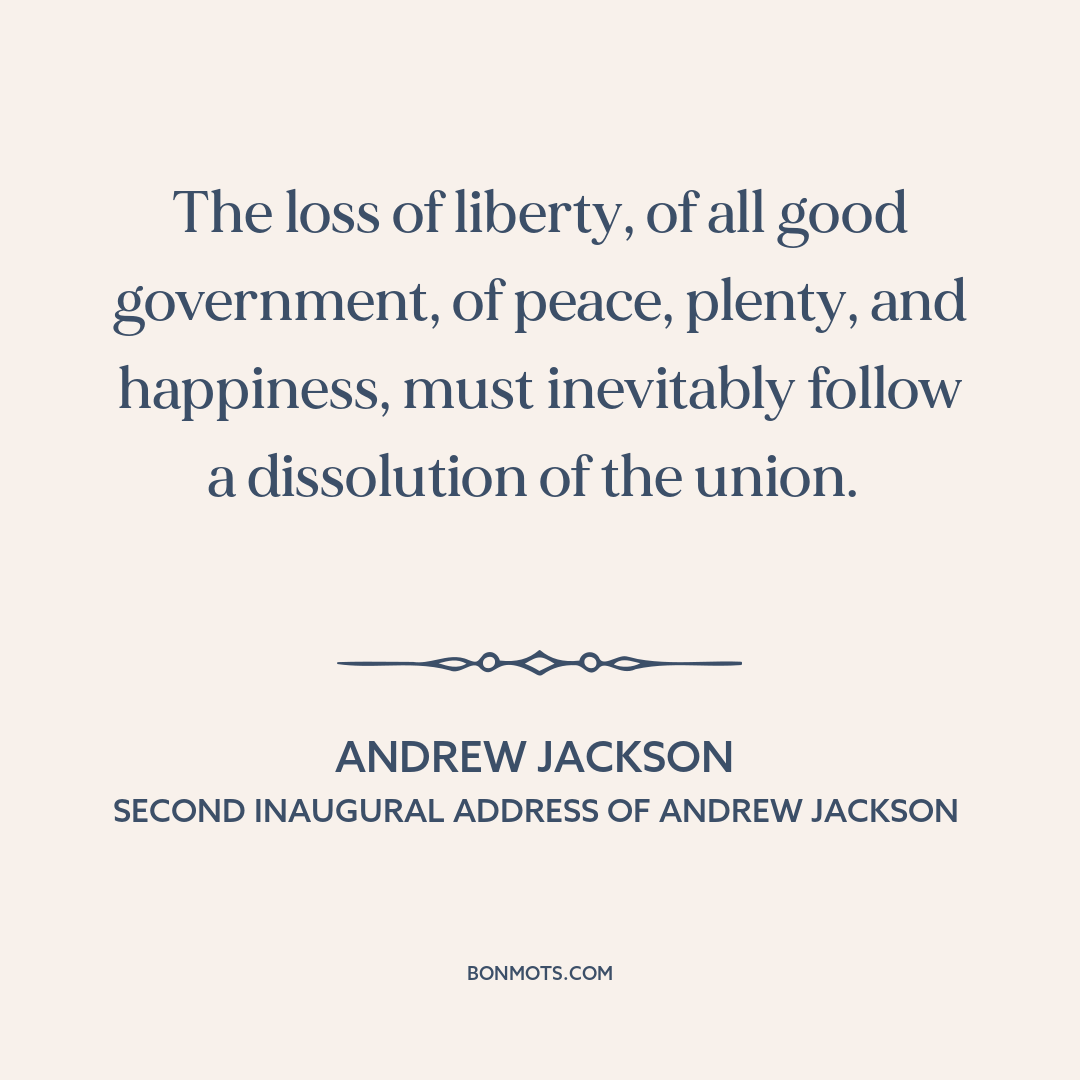 The loss of liberty, of all good government, of peace, plenty, and happiness, must inevitably follow a dissolution of the union.