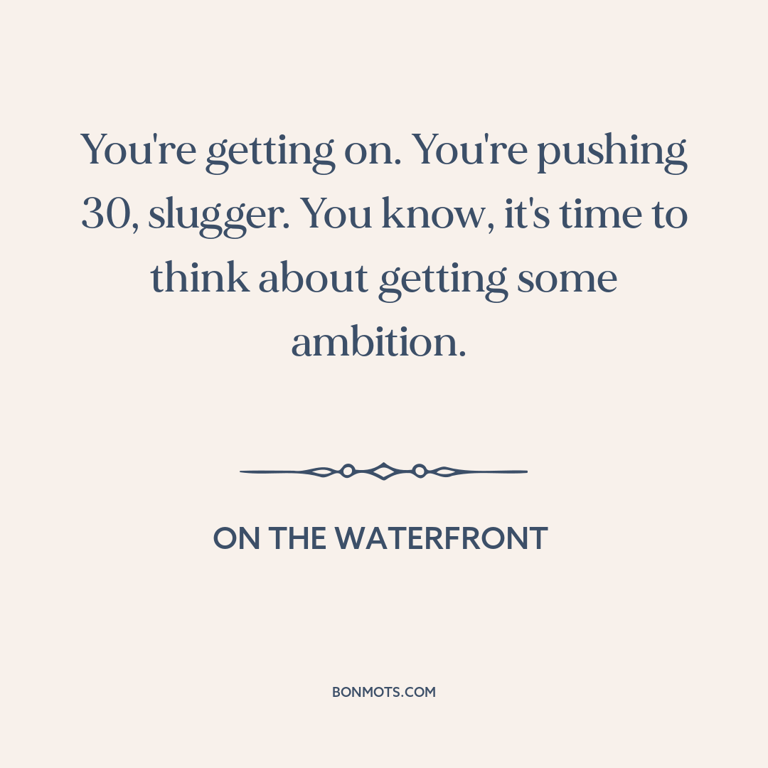 You're getting on. You're pushing 30, slugger. You know, it's time to think about getting some ambition.