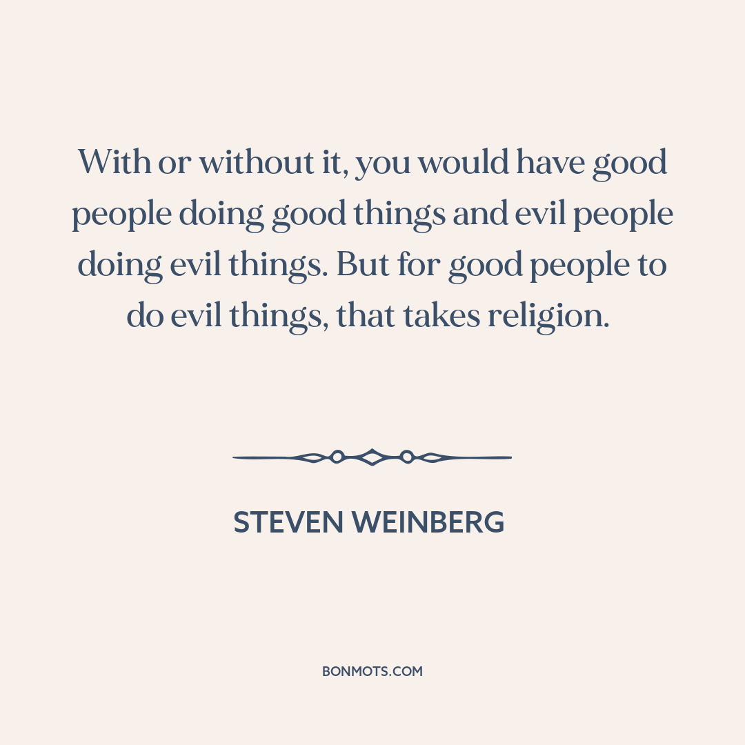 With or without it, you would have good people doing good things and evil people doing evil things. But for good people to do evil things, that takes religion.