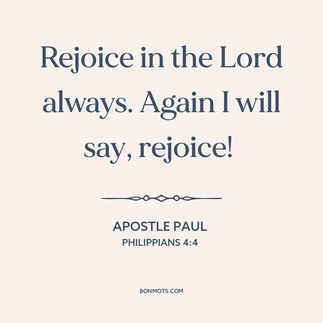 Rejoice in the Lord always. Again I will say, rejoice!