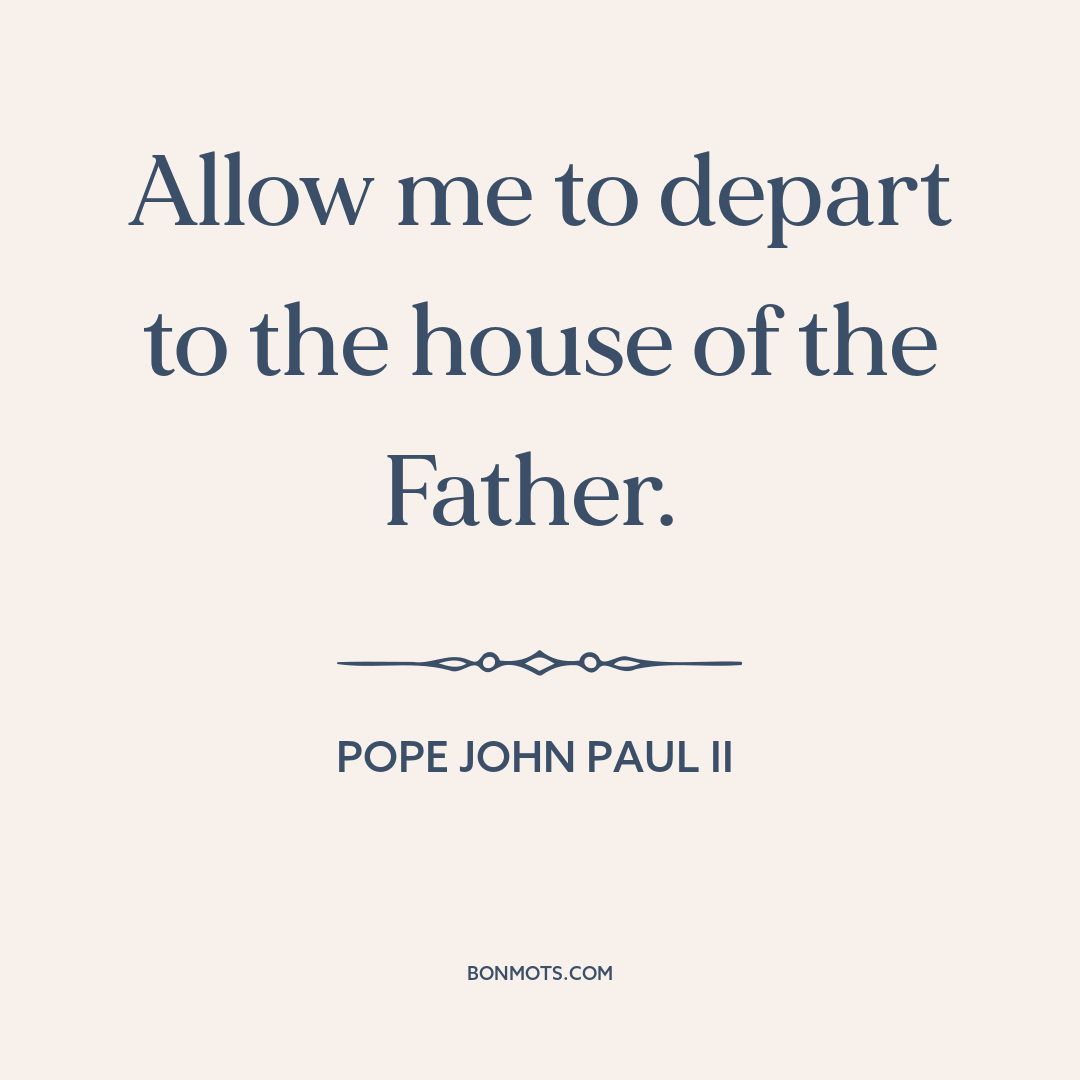 Pope John Paul II. Quoted in "Vatican Details Final Days of Pope John Paul II." Written by Brian Wingfield. The New York Times, 18 Sept. 2005. Originally his last words before he died on 2 Apr. 2005.