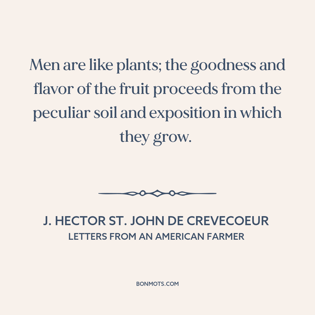 Men are like plants; the goodness and flavor of the fruit proceeds from the peculiar soil and exposition in which they grow.