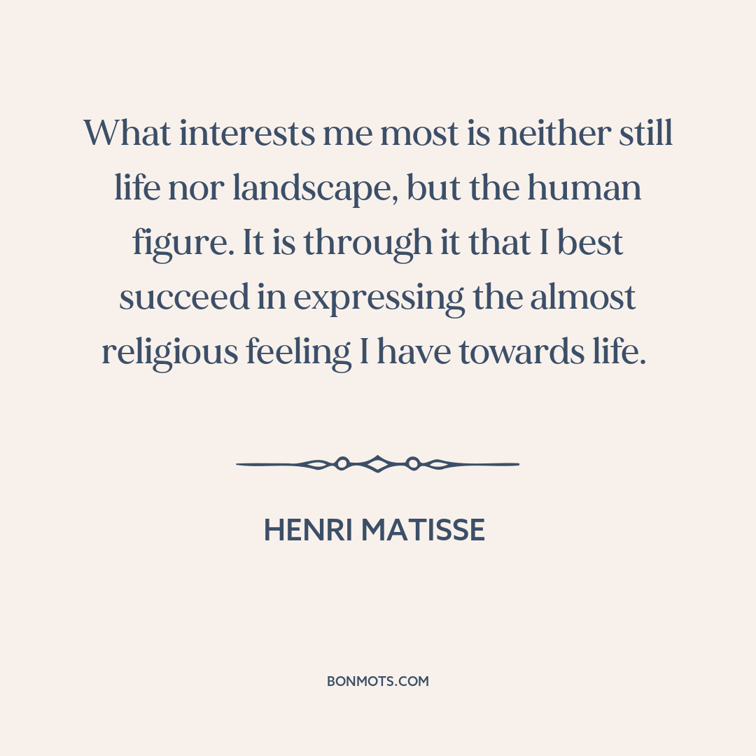 What interests me most is neither still life nor landscape, but the human figure. It is through it that I best succeed in expressing the almost religious feeling I have towards life.
