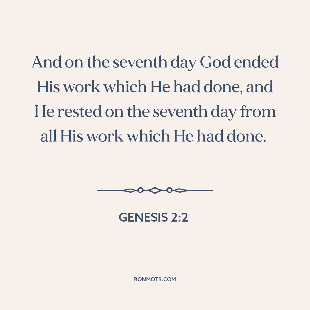 וַיְכַ֤ל אֱלֹהִים֙ בַּיֹּ֣ום הַשְּׁבִיעִ֔י מְלַאכְתֹּ֖ו אֲשֶׁ֣ר עָשָׂ֑ה וַיִּשְׁבֹּת֙ בַּיֹּ֣ום הַשְּׁבִיעִ֔י מִכָּל־מְלַאכְתֹּ֖ו אֲשֶׁ֥ר עָשָֽׂה׃