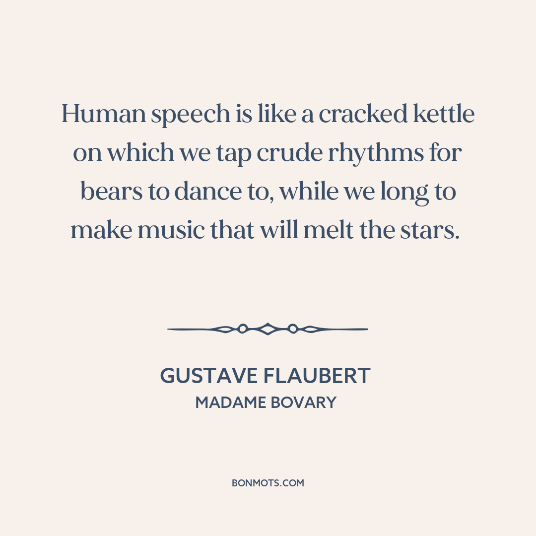 Human speech is like a cracked kettle on which we tap crude rhythms for bears to dance to, while we long to make music that will melt the stars.