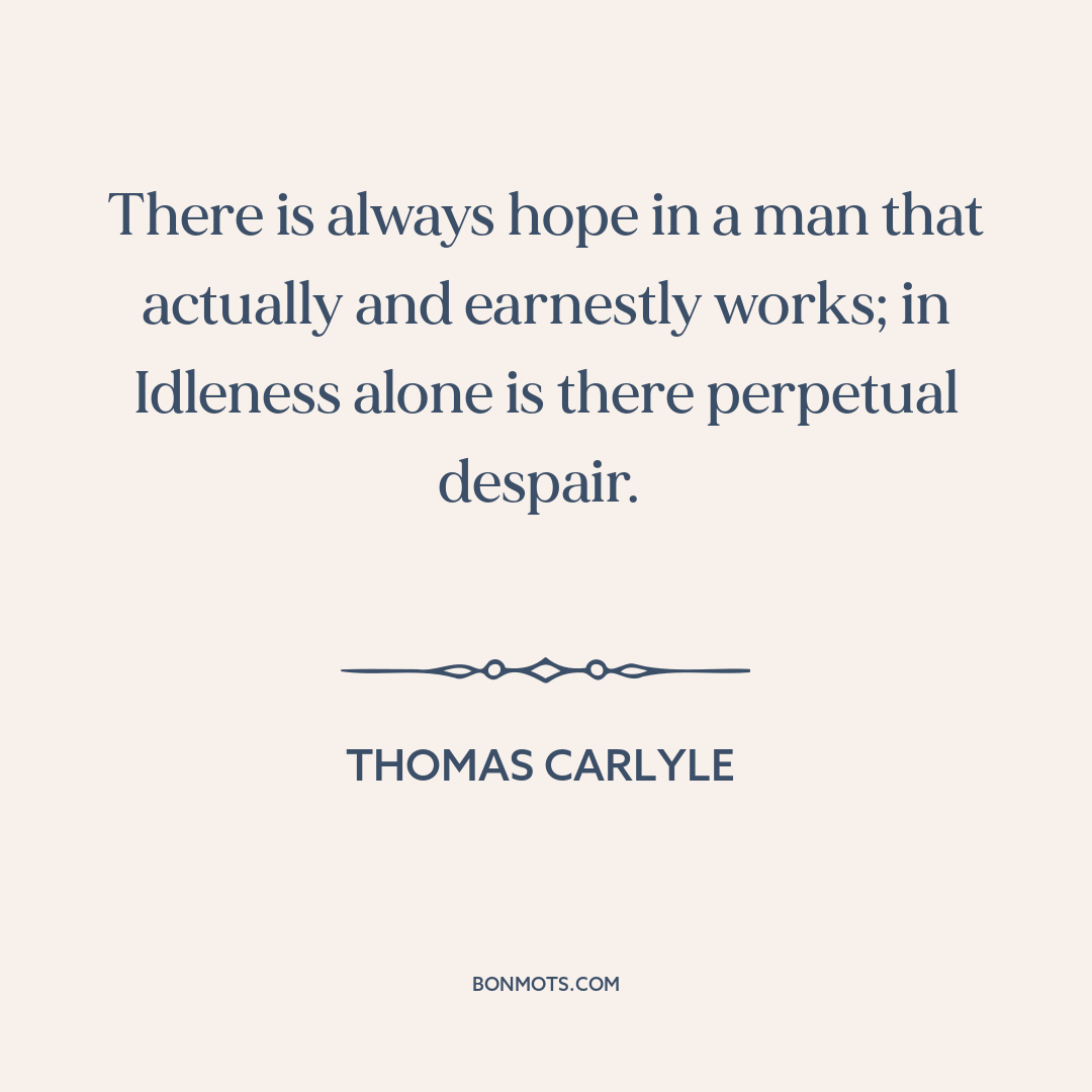 There is always hope in a man that actually and earnestly works; in Idleness alone is there perpetual despair.