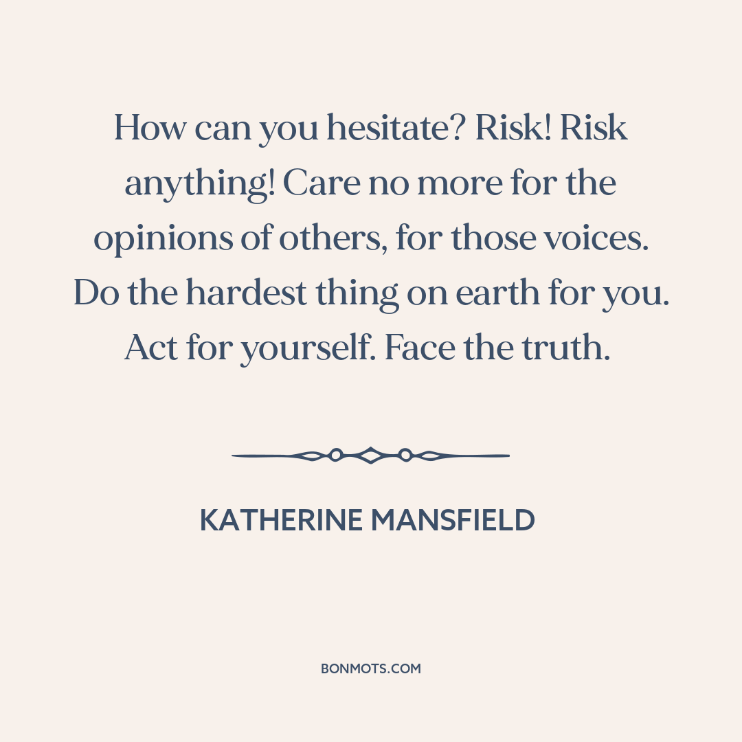 How can you hesitate? Risk! Risk anything! Care no more for the opinions of others, for those voices. Do the hardest thing on earth for you. Act for yourself. Face the truth.