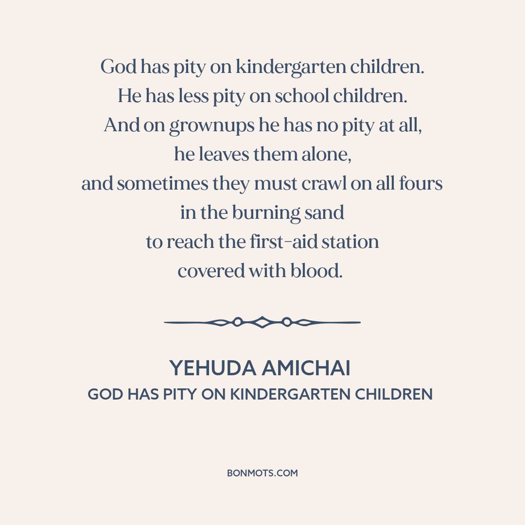 Amichai, Yehuda. "God Has Pity on Kindergarten Children." Now and in Other Days. 1955.