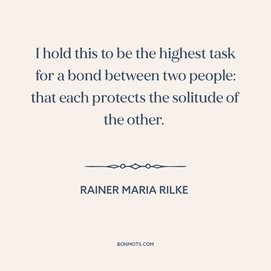 I hold this to be the highest task for a bond between two people: that each protects the solitude of the other.