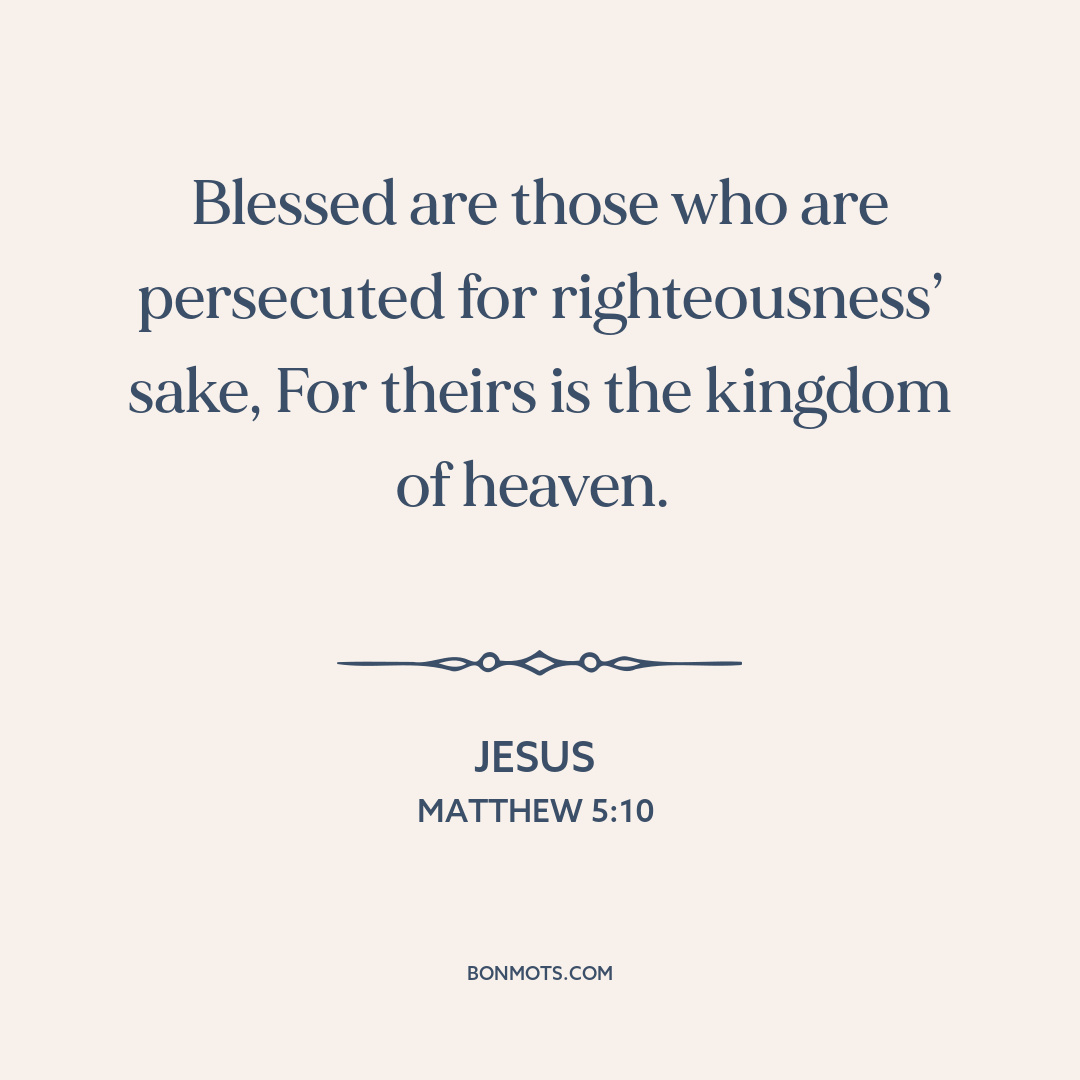 Blessed are those who are persecuted for righteousness’ sake, For theirs is the kingdom of heaven.