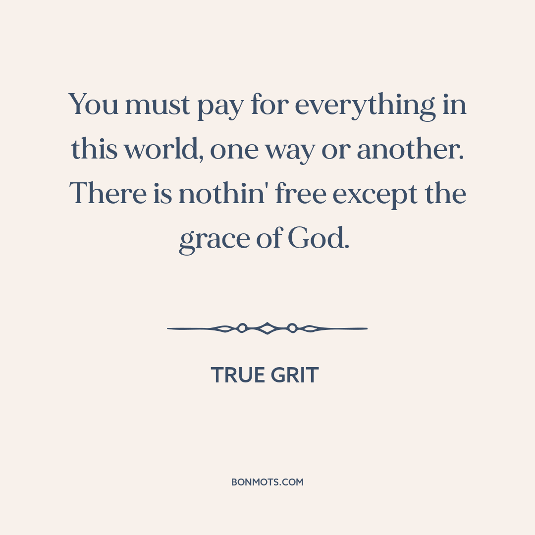You must pay for everything in this world, one way or another. There is nothin' free except the grace of God.