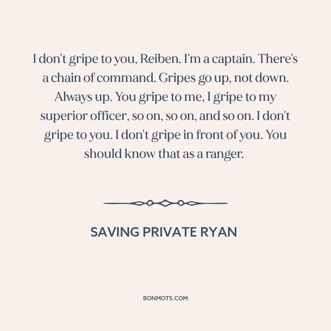 I don't gripe to you, Reiben. I'm a captain. There's a chain of command. Gripes go up, not down. Always up. You gripe to me, I gripe to my superior officer, so on, so on, and so on. I don't gripe to you. I don't gripe in front of you. You should know that as a ranger.