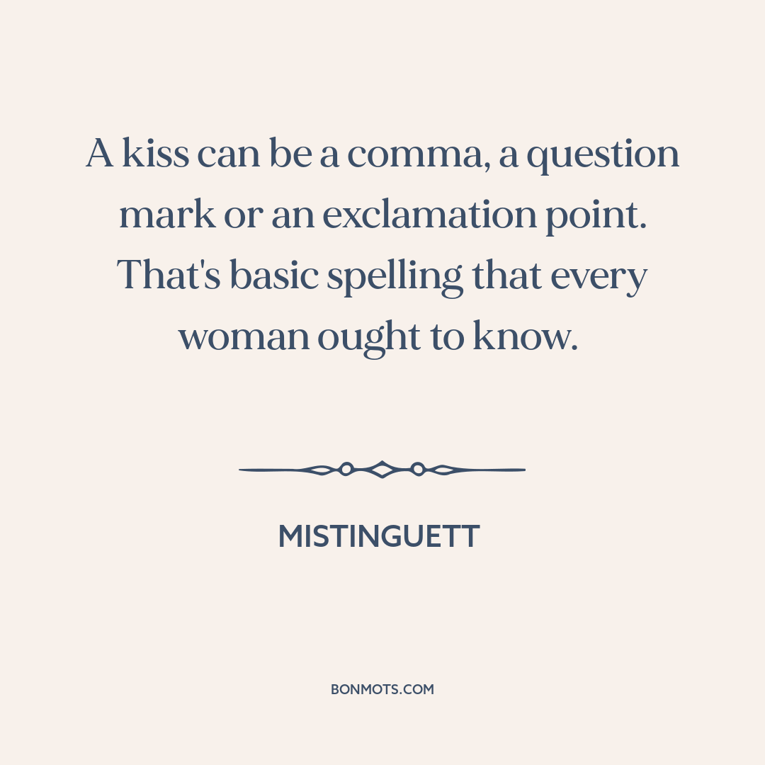 A kiss can be a comma, a question mark or an exclamation point. That's basic spelling that every woman ought to know.
