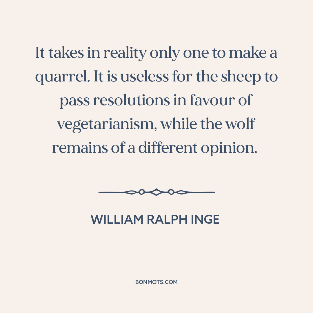 It takes in reality only one to make a quarrel. It is useless for the sheep to pass resolutions in favour of vegetarianism, while the wolf remains of a different opinion.
