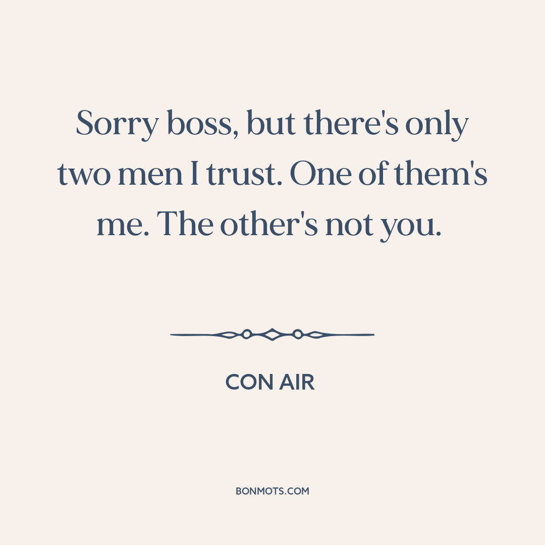 Sorry boss, but there's only two men I trust. One of them's me. The other's not you.