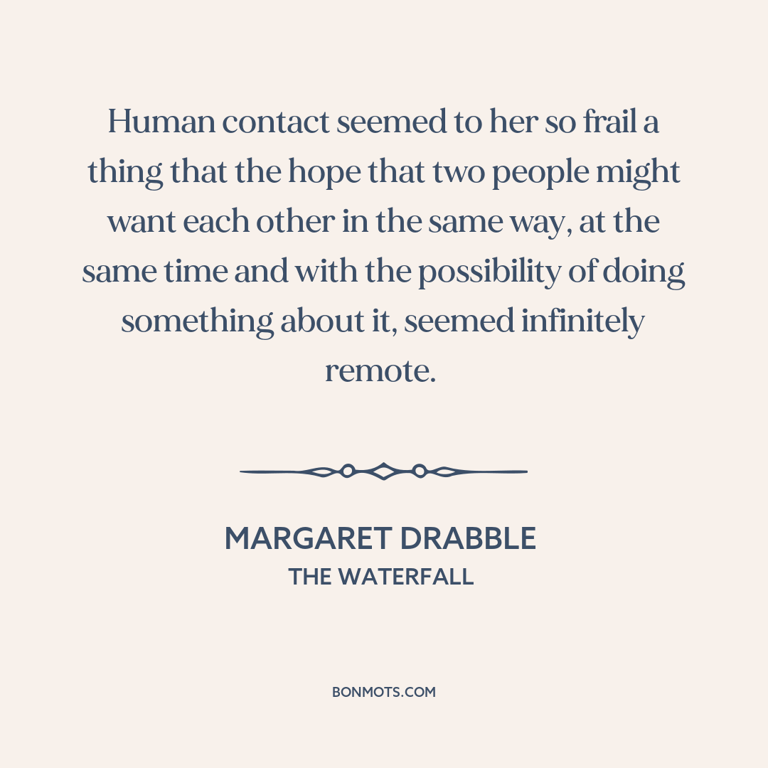 Human contact seemed to her so frail a thing that the hope that two people might want each other in the same way, at the same time and with the possibility of doing something about it, seemed infinitely remote.