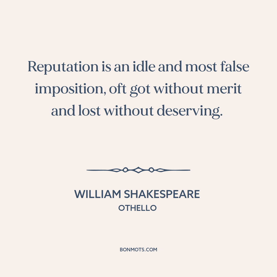 Reputation is an idle and most false imposition, oft got without merit and lost without deserving.