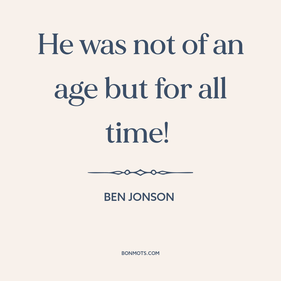 Jonson, Ben. "To the Memory of My Beloved, the Author, Mr. William Shakespeare." Mr. William Shakespeare's Comedies, Histories, & Tragedies. London: Edward Blount and William and Isaac Jaggard, 1623.