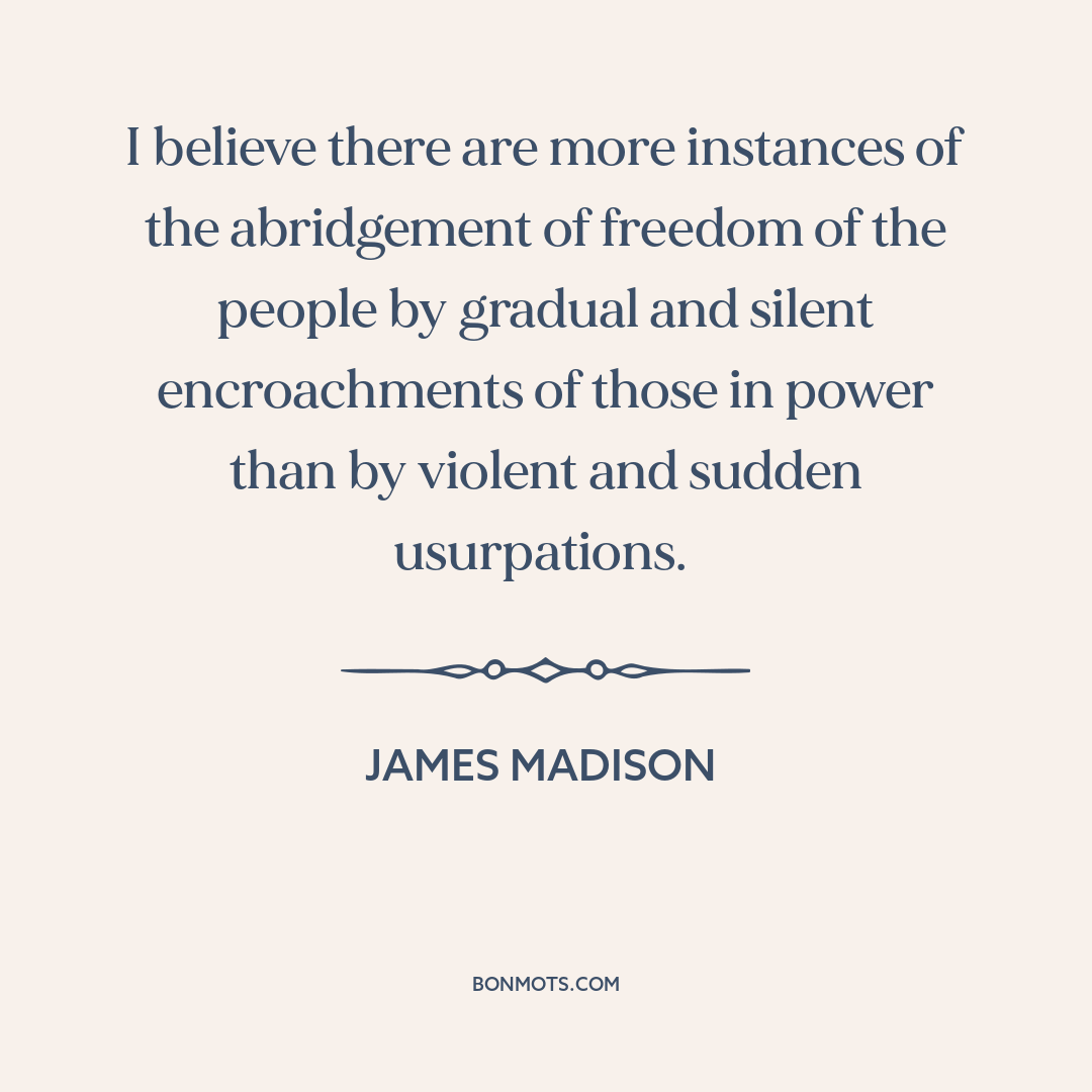 I believe there are more instances of the abridgement of freedom of the people by gradual and silent encroachments of those in power than by violent and sudden usurpations.