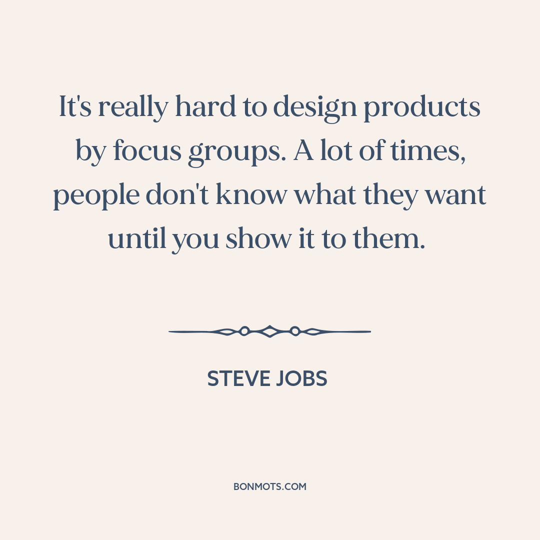It's really hard to design products by focus groups. A lot of times, people don't know what they want until you show it to them.