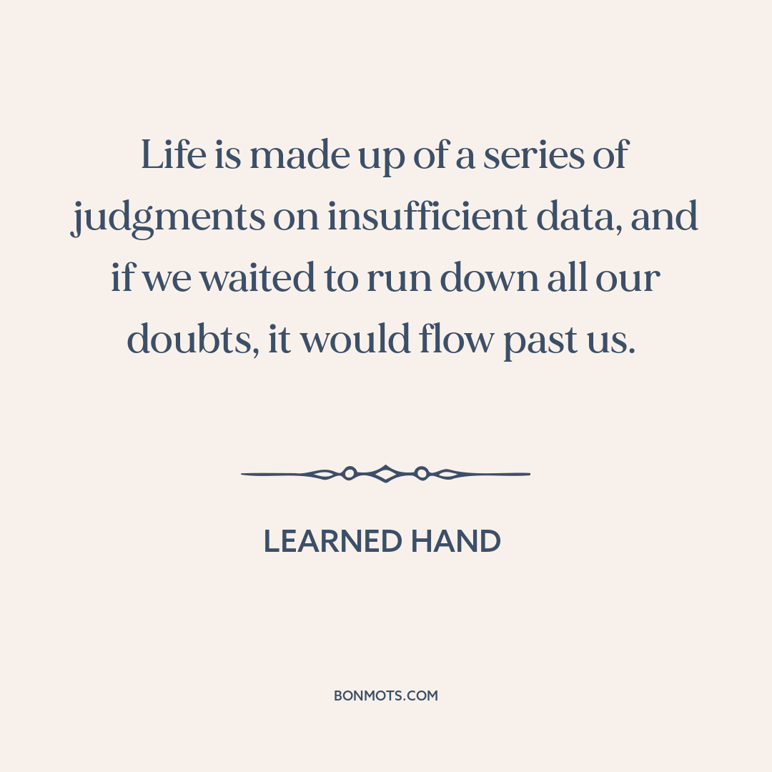 Life is made up of a series of judgments on insufficient data, and if we waited to run down all our doubts, it would flow past us.