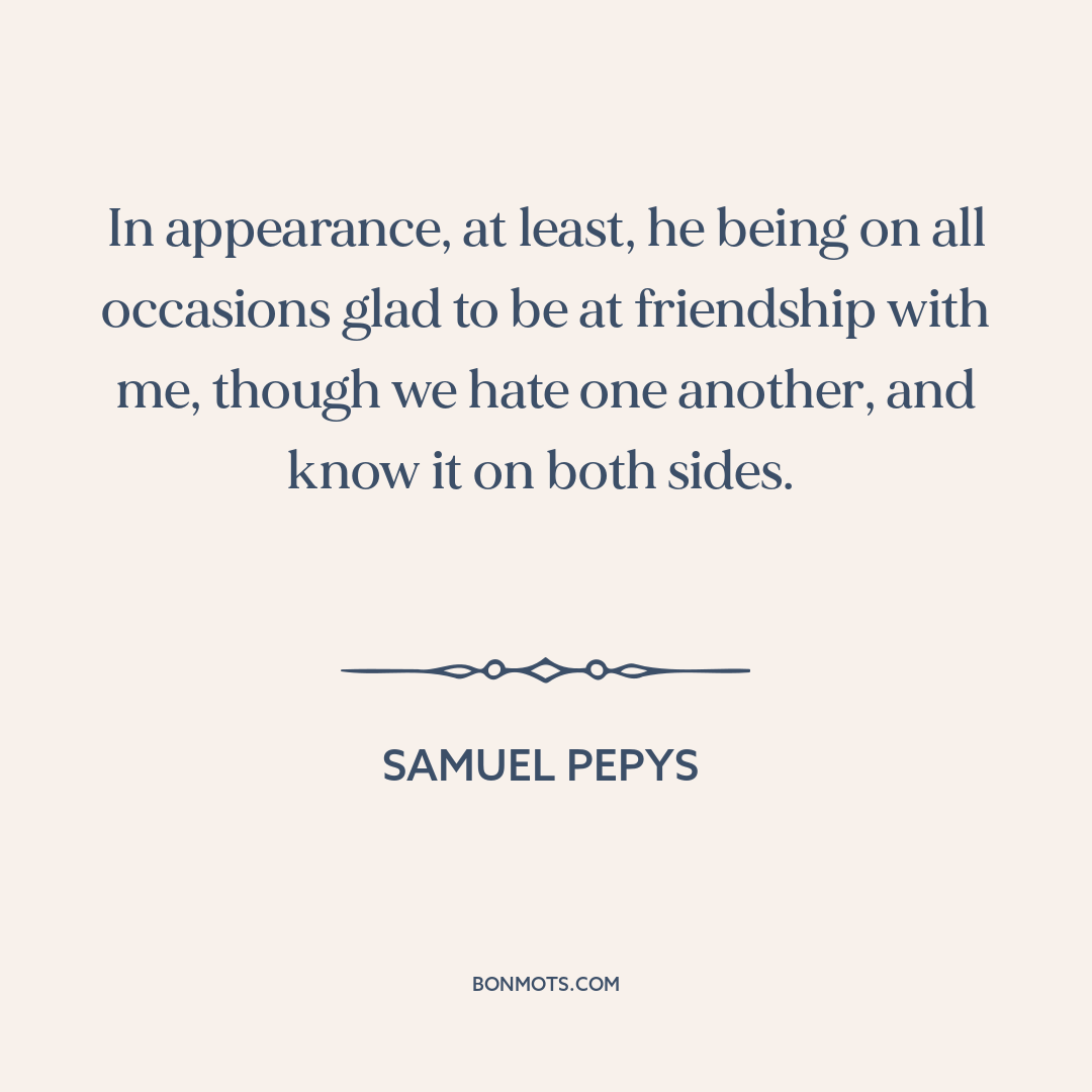 In appearance, at least, he being on all occasions glad to be at friendship with me, though we hate one another, and know it on both sides.