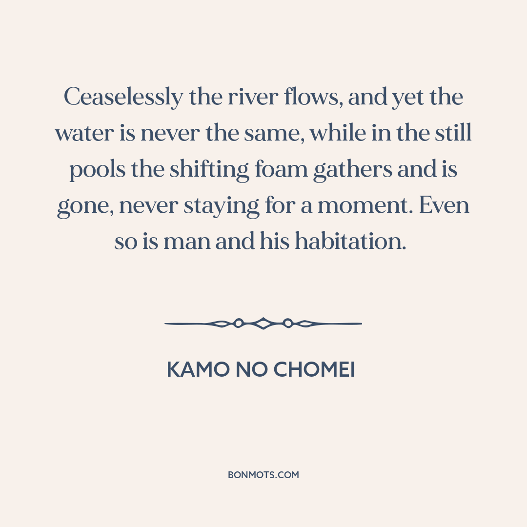 Ceaselessly the river flows, and yet the water is never the same, while in the still pools the shifting foam gathers and is gone, never staying for a moment. Even so is man and his habitation.