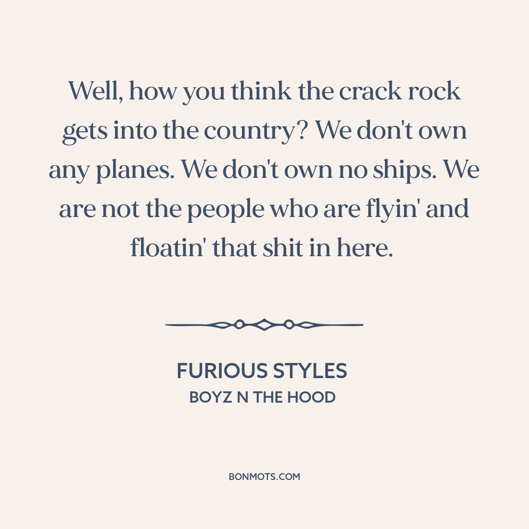 Well, how you think the crack rock gets into the country? We don't own any planes. We don't own no ships. We are not the people who are flyin' and floatin' that shit in here.