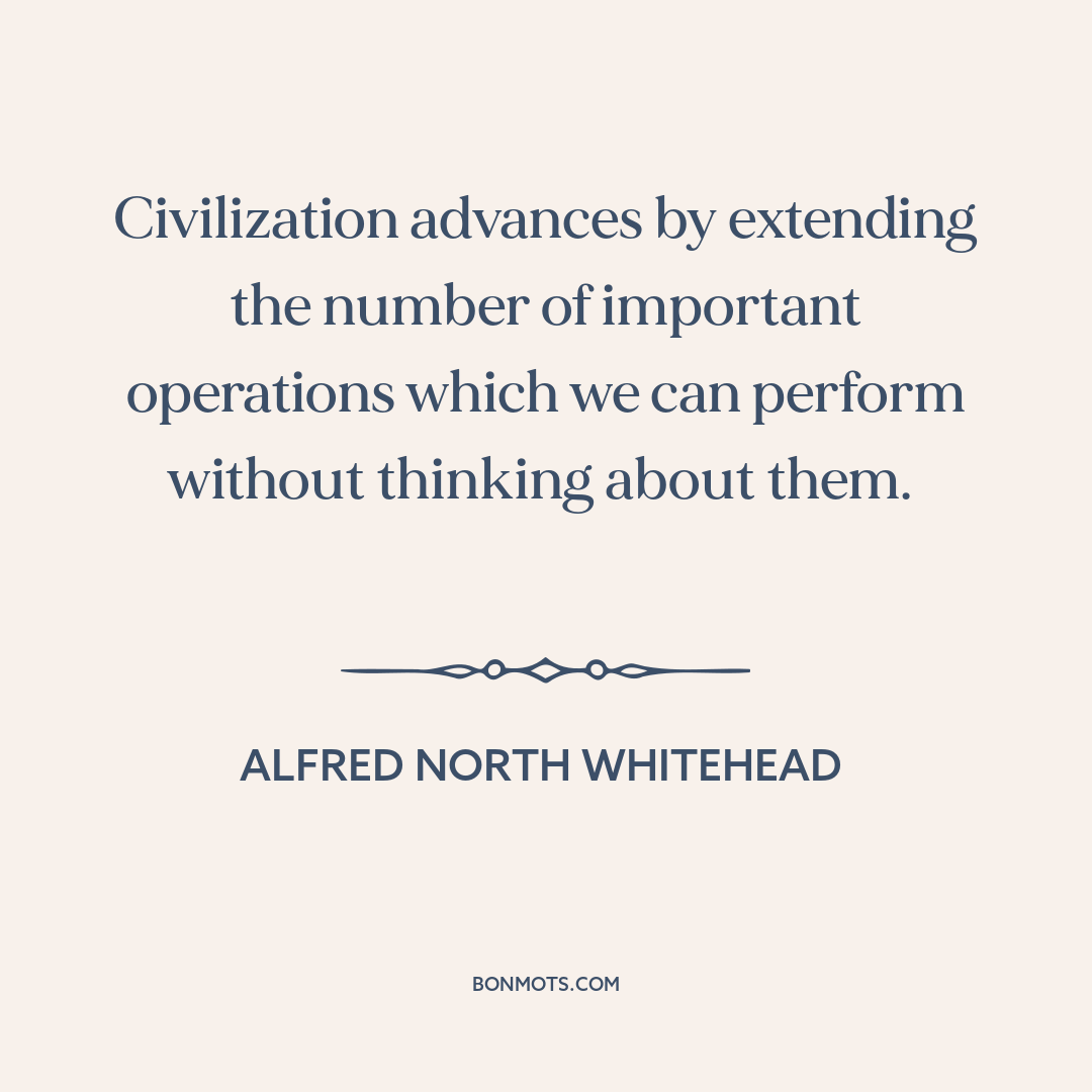 Civilization advances by extending the number of important operations which we can perform without thinking about them.