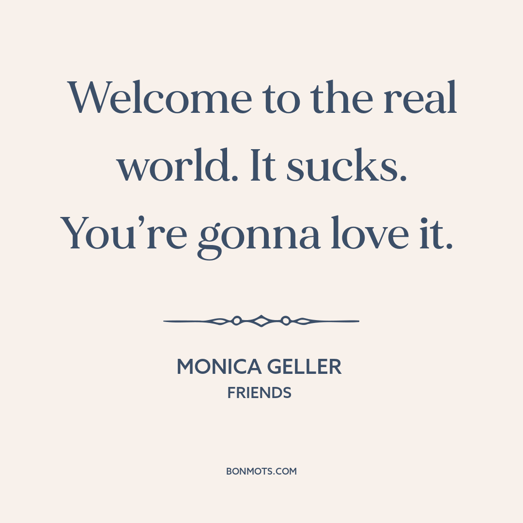 Welcome to the real world. It sucks. You’re gonna love it.