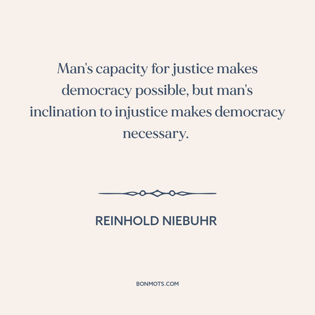Man's capacity for justice makes democracy possible, but man's inclination to injustice makes democracy necessary.