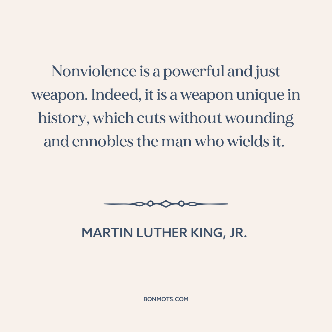 Nonviolence is a powerful and just weapon. Indeed, it is a weapon unique in history, which cuts without wounding and ennobles the man who wields it.