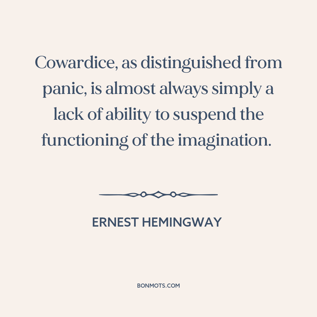Cowardice, as distinguished from panic, is almost always simply a lack of ability to suspend the functioning of the imagination.